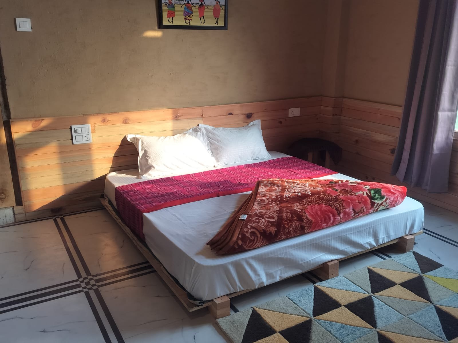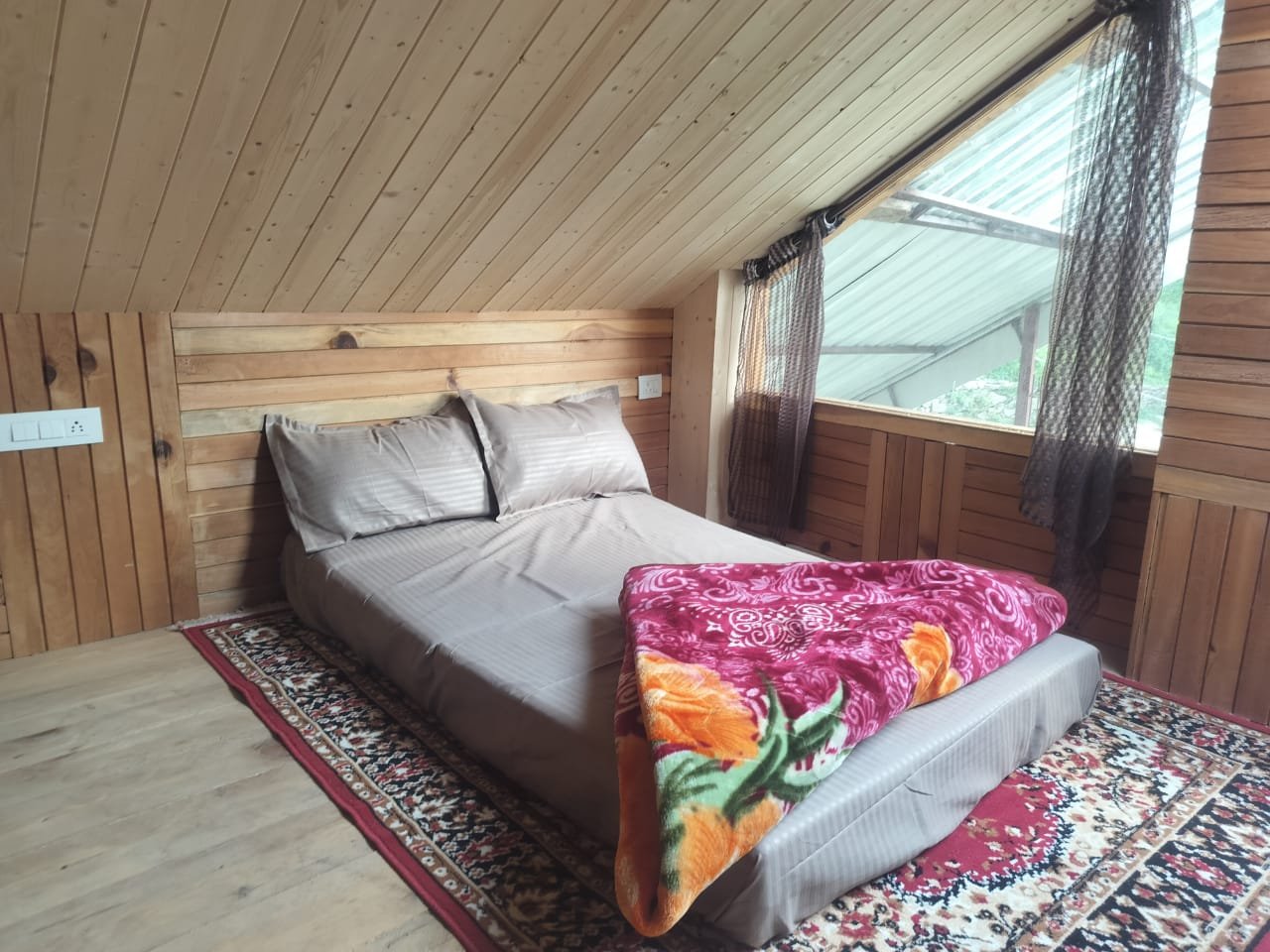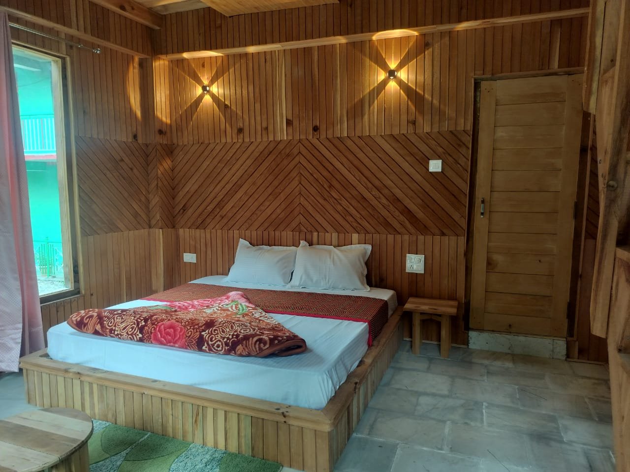 Our cottage rooms are uniquely designed using ancient Himalayan building techniques: Walls coated with mud and cow dung – a natural insulation method used in Himachal for centuries. This keeps the rooms warm in winter and cool in summer, ensuring a healthy, eco-friendly environment. Wooden interiors crafted from oak and local timber – adding natural fragrance, warmth, and an authentic mountain vibe. Handmade wooden ceilings and beams – showcasing local craftsmanship and giving each room a rustic, cozy appearance. These traditional materials not only enhance the beauty of the cottage but also create a peaceful and grounding ambiance you will instantly feel as you enter.
